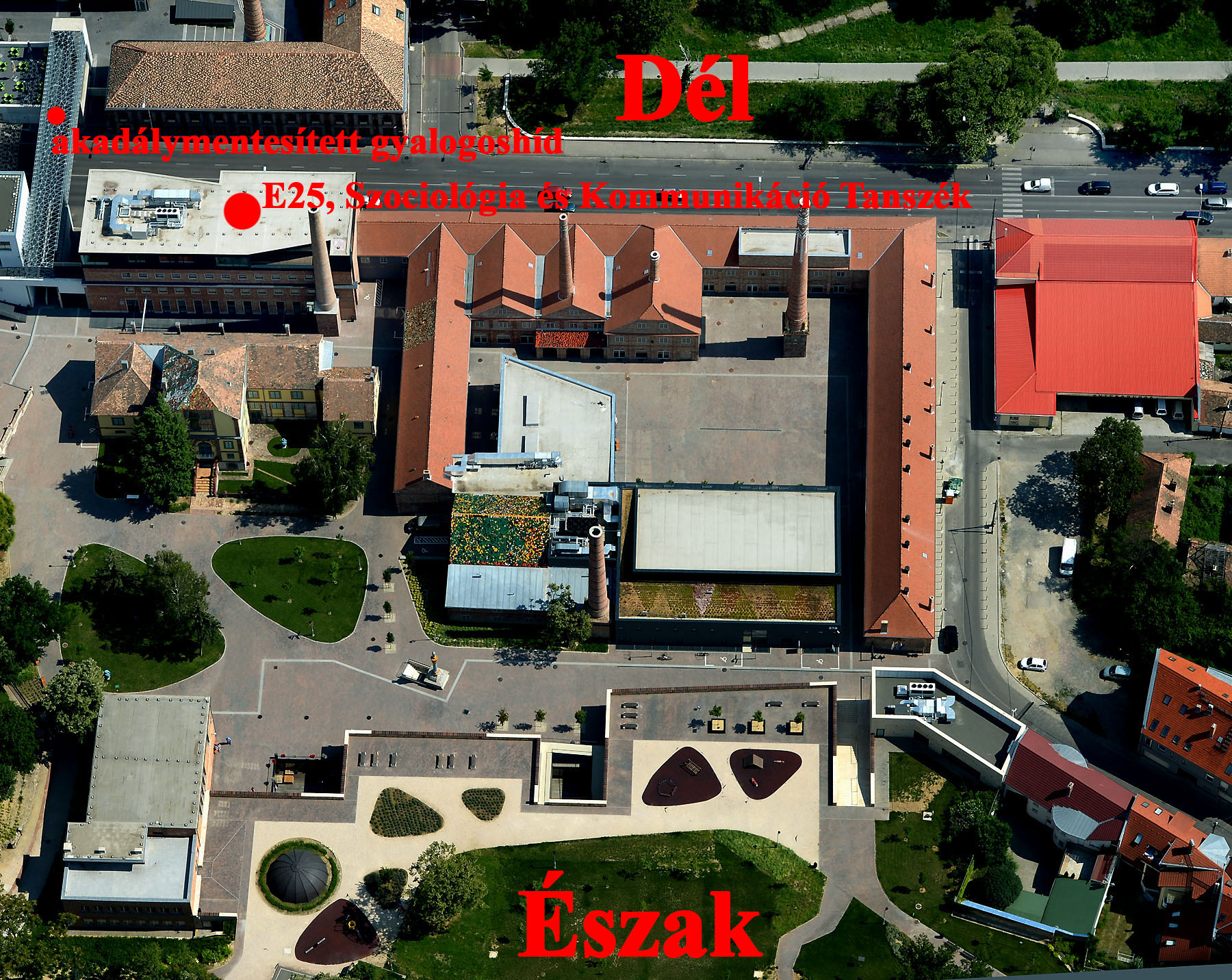Az épület a 001-es teremtől eltekintve teljesen akadálymentesített. Mozgáskorlátozottak számára igazolvány felmutatásával lehetséges az autóval történő behajtás a Negyedbe a Major utcai kapunál. A nem mozgáskorlátozottak a déli szárnyban található őrzött parkolóban parkolhatnak (melyet természetesen a mozgáskorlátozottak is használhatnak, hiszen az északi tömbbe visszavezető hív is akadálymentesített, rendelkezik mindkét oldalon lifttel), illetve a Major utcai bejárat előtti nyitott felületen (ez utóbbi nem őrzött). A parkolás mindkét helyen ingyenes.